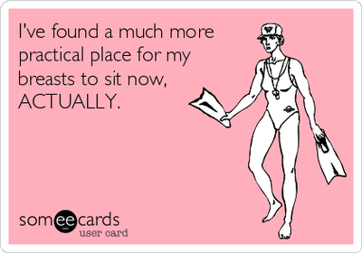 I’m getting used to the looks of pity from the kids in the changing room at the local pool now, when I first remove my cozzie and my boobs make their hasty retreat south from the safety of the lycra support, with the same speed as two satellites re-entering Earth.
