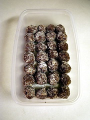Luckily, I am finding some consolation in the leftover Rum Balls from the party. I was quite surprised that not everyone shares my enthusiasm for Christmas Rum Balls and there were quite a few left over, which have been very therapeutic. To the point that I’ve been really quite concerned whenever I’ve passed those over-zealous RBTs this week, that I may actually be over the alcohol limit and the first person to lose their license for quaffing too much chocolate.
