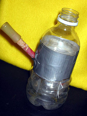 A poorly designed homemade bong for inhalation of cannabis. (Photo credit: Wikipedia)