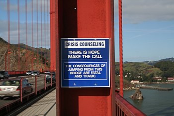 Suicide prevention message on the Golden Gate Bridge in San Francisco, California. (Photo credit: Wikipedia)