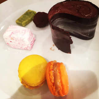 And in regard to our recipes, I learned that there are so many complex secrets to making a decent macaroon that it’s much easier to buy them; that ‘financiers’ are pretty gross and that the teardrop looks super-impressive even when made by someone as clueless as me, but it needs to be refrigerated or it becomes slop in a cake box; and that raspberry ripple is created by the technique of half-blending.