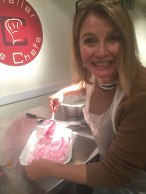 The theme of our class was Sweet Treats – Petits Fours, which are delicate little cakes you eat after dinner and frankly not really my thing, but they appealed to my sister – that most hated of the female species who posts images on Instagram of perfect children’s birthday cakes she’s knocked up after a twelve hour day at work and putting three kids to bed – and her superior knowledge of cooking techniques.